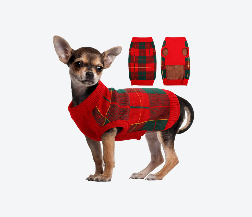 | Great for festive occasions Soft, comfortable knit | Works for small/medium dogs only Not ideal for rough outdoor play |